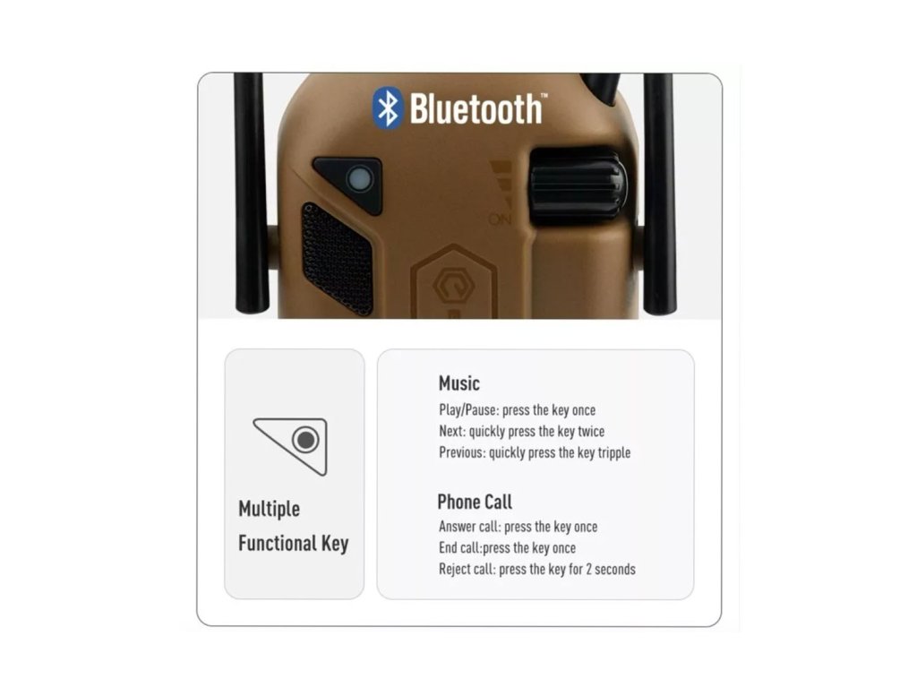 Aktívne elektronické slúchadlá EARMOR® M300T sú praktické chrániče sluchu pre strelnicu, poľovníctvo aj taktické použitie. Automaticky tlmia hlasné impulzy a zároveň zosilňujú tiché zvuky okolia, takže lepšie vnímate komunikáciu a dianie okolo seba. Vďaka Bluetooth môžete pohodlne prijímať hovory alebo počúvať hudbu aj počas používania.