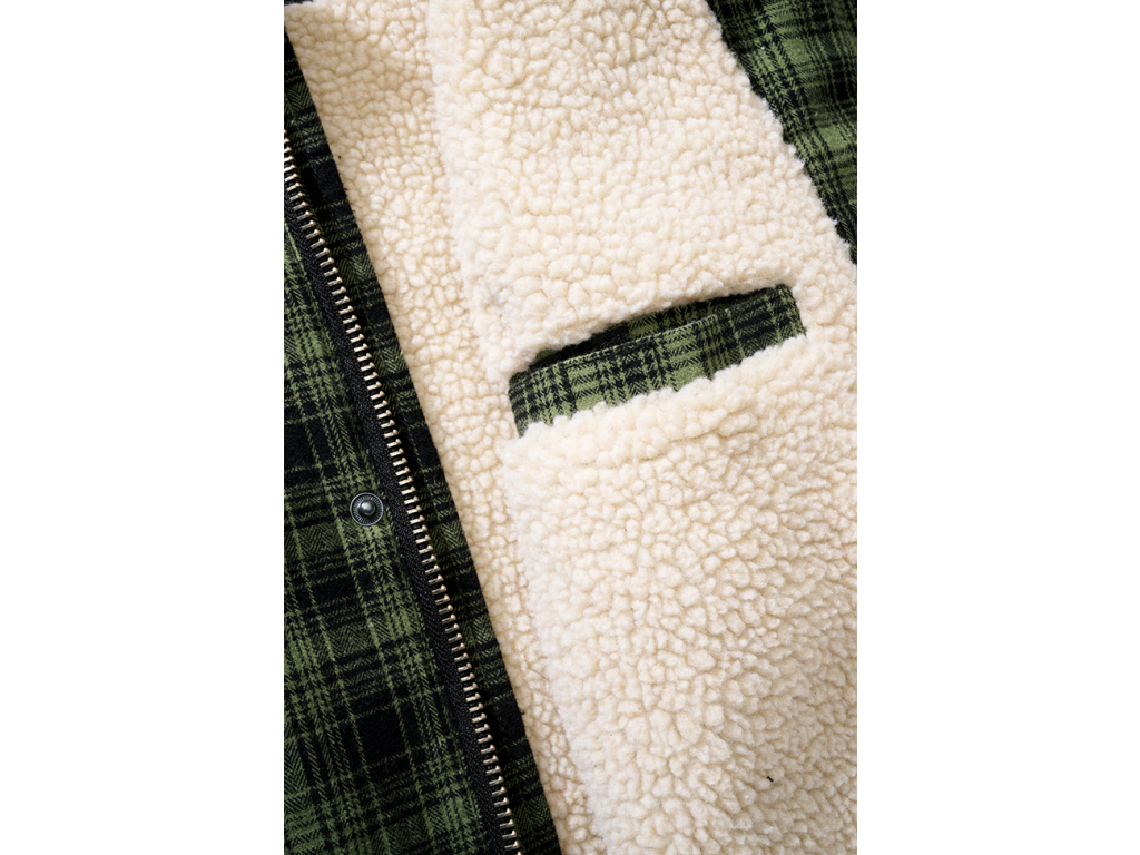 Košeľová bunda v štýle lumberjack s hrejivou sherpa podšívkou. Pohodlná, odolná a ideálna na prechodné aj chladnejšie dni.