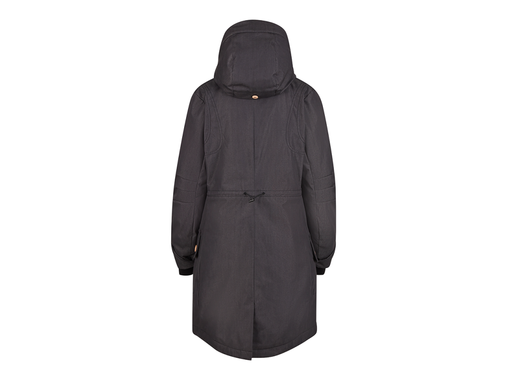 Vnútorné rebrované manžety na rukávoch zlepšujú tepelný komfort a zabraňujú prenikaniu chladu. Sťahovanie v páse umožňuje prispôsobiť siluetu podľa potreby a zvýrazniť postavu. Zadný rozparok zabezpečuje pohodlný krok pri chôdzi. Celkový vzhľad dopĺňajú dekoratívne detaily z imitácie kože, ktoré kabátu dodávajú moderný a štýlový charakter.