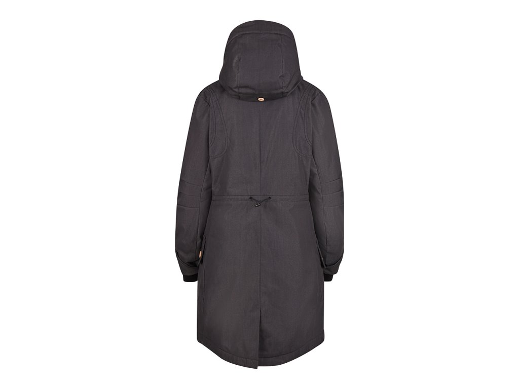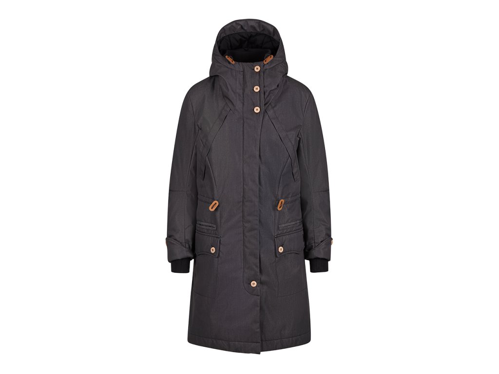 Kabát má zapínanie na zips doplnené o veternú légu, ktorá zvyšuje ochranu proti chladu. Praktické riešenie vreciek zahŕňa bočné šikmé vrecká aj našité vrecká so zapínaním na gombík, ktoré ponúkajú dostatok priestoru na drobnosti. Nechýbajú ani vnútorné vrecká pre bezpečné uloženie cenností.