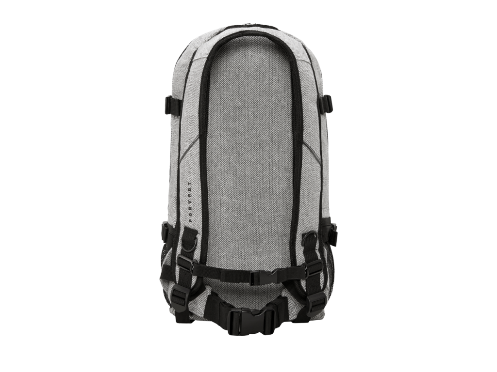 Main compartment / 3 additional compartments with zipper / Padded back and shoulder straps / Boardcatcher / Adjustable chest and waist strap