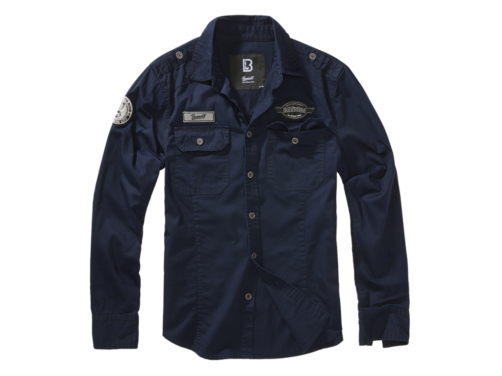 Pánska army košeľa s klasickým strihom, epolety a výšivkami. Dve náprsné vrecká, kovový štítok Brandit a prepracované detaily dodávajú košeli výrazný taktický vzhľad.