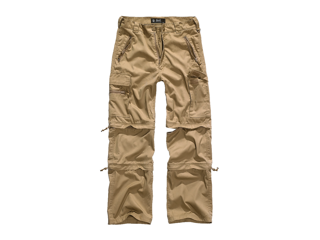 Odolné pánske trekkingové nohavice Brandit z priedušnej a vodeodpudivej tkaniny. Viacúčelové cargo nohavice so zipsovateľnými vreckami a funkčnými detailmi pre turistiku aj bežné nosenie.