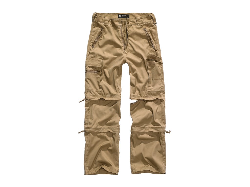 Odolné pánske trekkingové nohavice Brandit z priedušnej a vodeodpudivej tkaniny. Viacúčelové cargo nohavice so zipsovateľnými vreckami a funkčnými detailmi pre turistiku aj bežné nosenie.