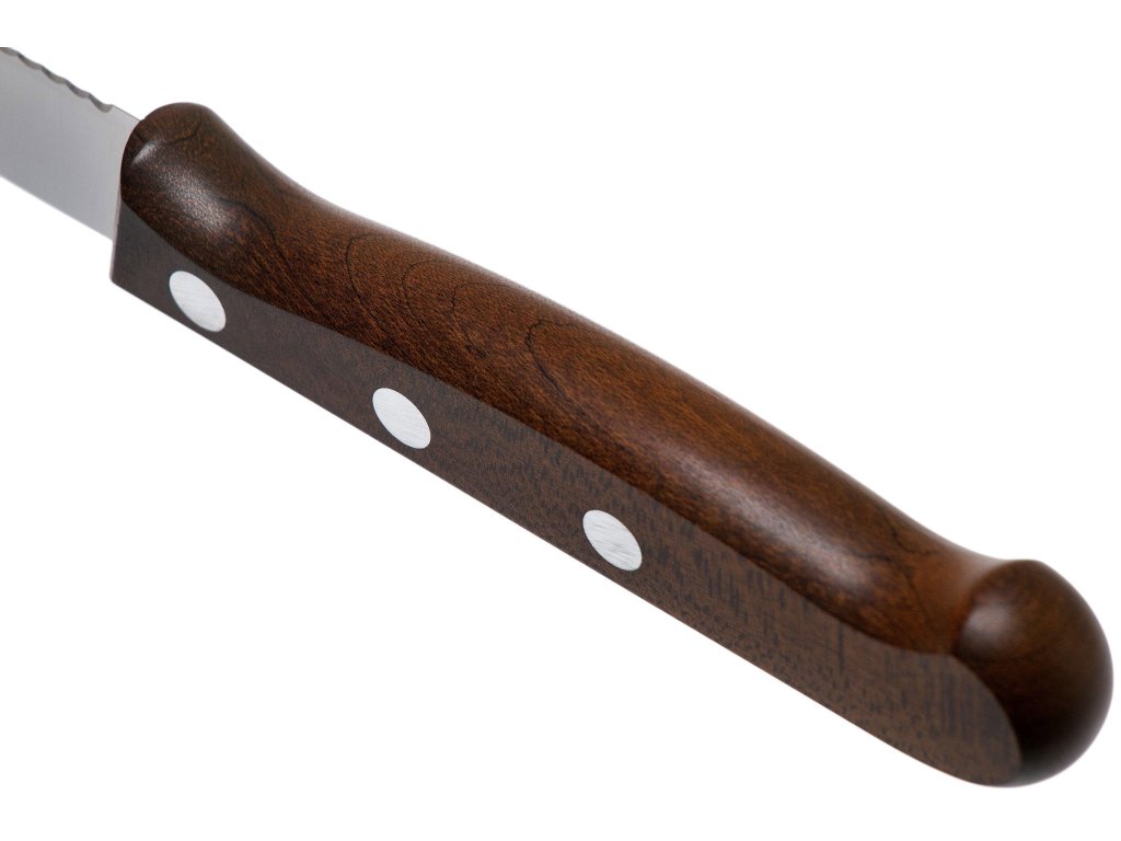 Nôž je vybavený ergonomickou protišmykovou rukoväťou z upraveného javorového dreva. Tento materiál je tvrdý, odolný a má dlhú životnosť. Drevo je odolné voči hnilobe, plesniam, hubám a drevokazným mikroorganizmom. Každá rukoväť je ručne leštená, vďaka čomu má jedinečné vzorovanie a elegantný vzhľad.