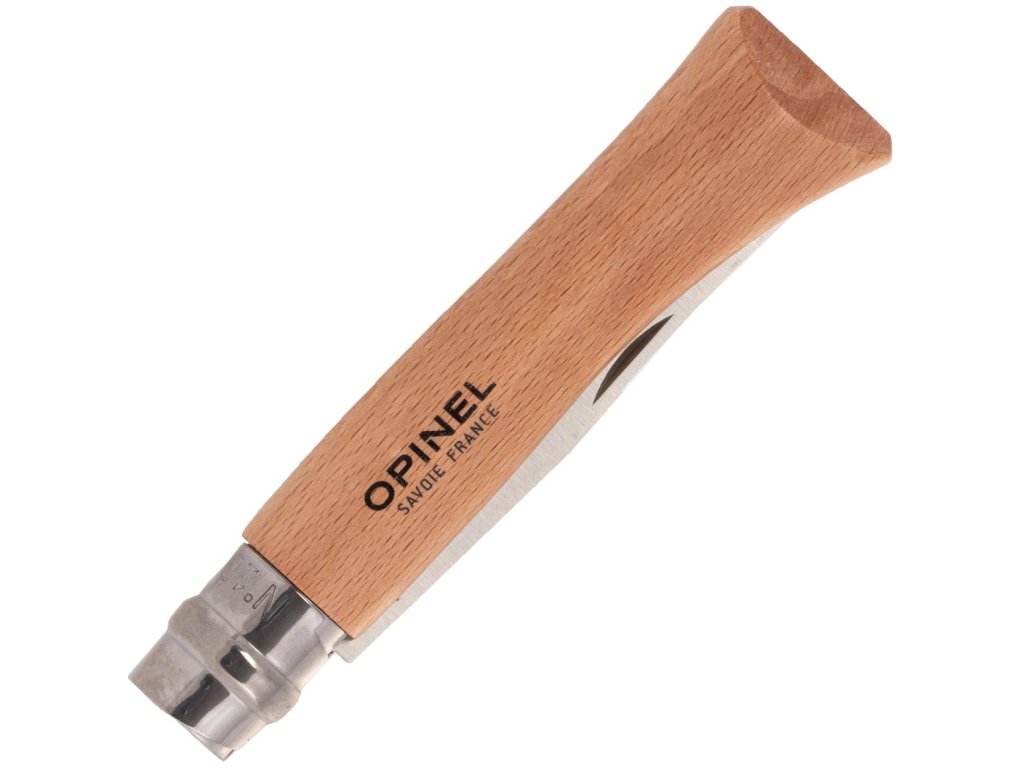 Vreckový zatvárací nôž s Opinel Inox 10 a čepeľou z nerezovej ocele je praktický a spoľahlivý nôž na každodenné použitie, vybavený bezpečnostnou poistkou ViroBlock.