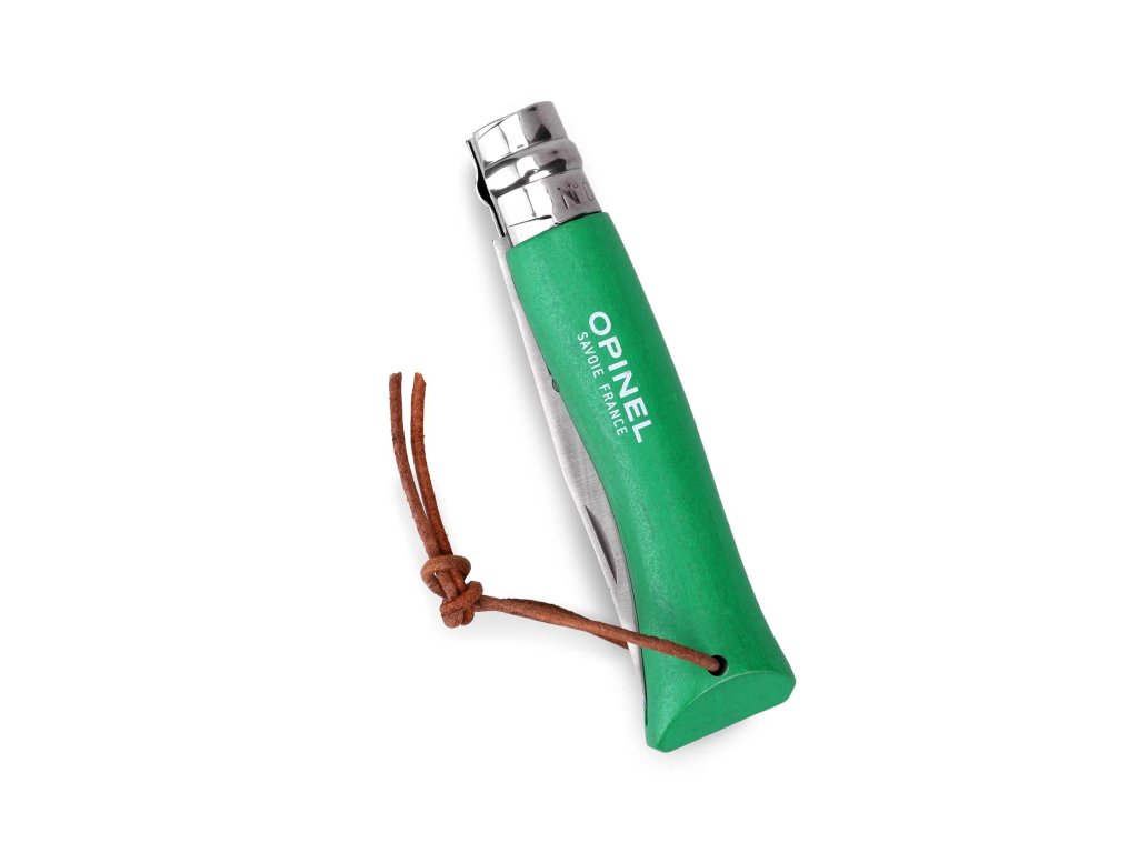 Rukoväť je vyrobená z lakovaného dreva, ktoré poskytuje príjemný úchop a tradičný vzhľad typický pre nože Opinel. Farebné prevedenie zelená (Green) dodáva nožu moderný a zároveň výrazný vzhľad.