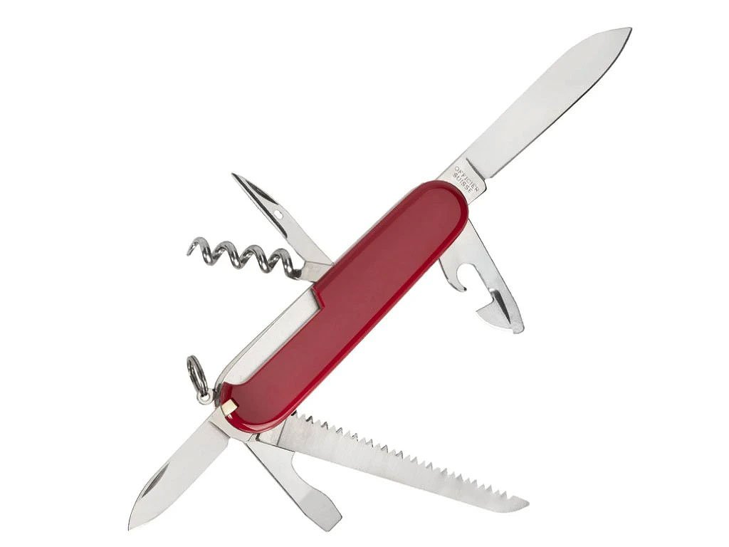 Vreckový nôž Victorinox Camper Red je stredne veľký kempingový a EDC multifunkčný nôž s 13 funkciami, ideálny na pobyt v prírode aj každodenné použitie.