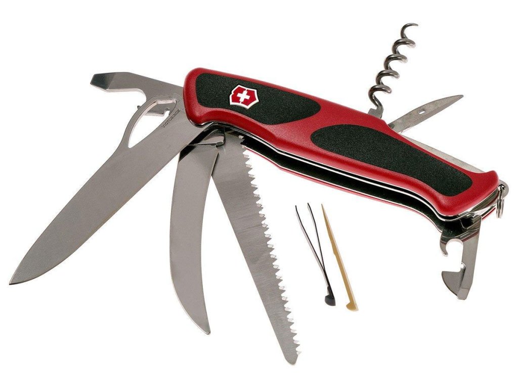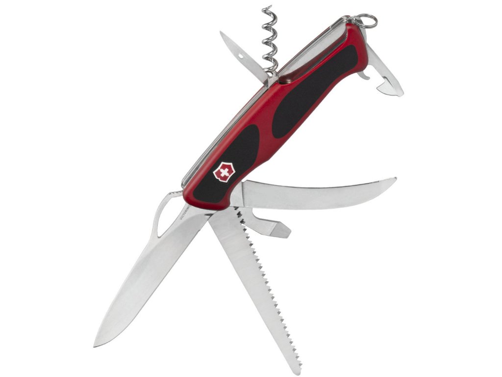 Vreckový nôž Victorinox RangerGrip 57 Red/Black je robustný outdoorový a EDC multifunkčný nôž s 13 funkciami, jednoručným otváraním a poistkou Linerlock, vyrobený vo Švajčiarsku.