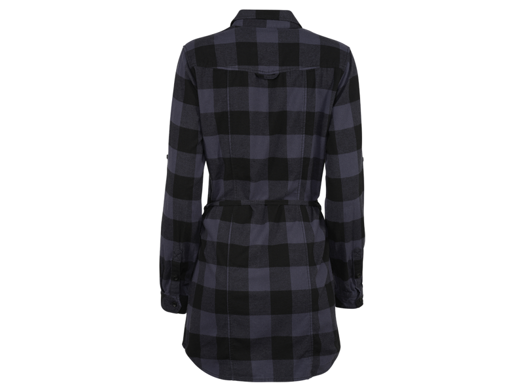 Klasický košeľový dizajn dopĺňa celoprepínanie na gombíky, dve náprsné vrecká s chlopňou a zapínaním a dlhé rukávy zakončené manžetou s gombíkom, vďaka čomu pôsobia šaty upravene, no stále ležérne. Nadčasový károvaný vzor robí z tohto kúsku všestrannú voľbu na každodenné nosenie.