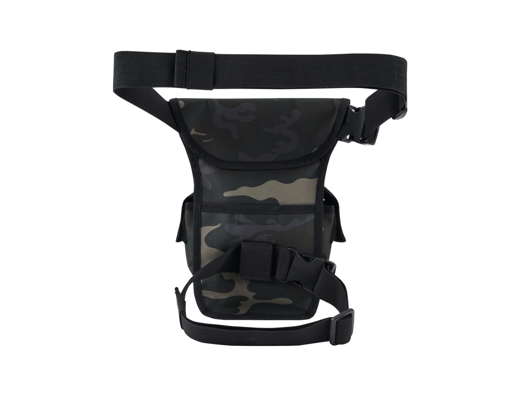 robust 600DEN polyester material / high quality zipper with zip-pulls / adjustable and detachable hip-strap - max. 135 cm / adjustable and detachable leg-strap - max. 80 cm / large main compartment with hook and loop closure / 2 lateral pockets with hook and loop closure / smartphone-pocket with zip-closure / large hook and loop pads for patches / hidden additational pockets / ideal for work, sparetime or sports