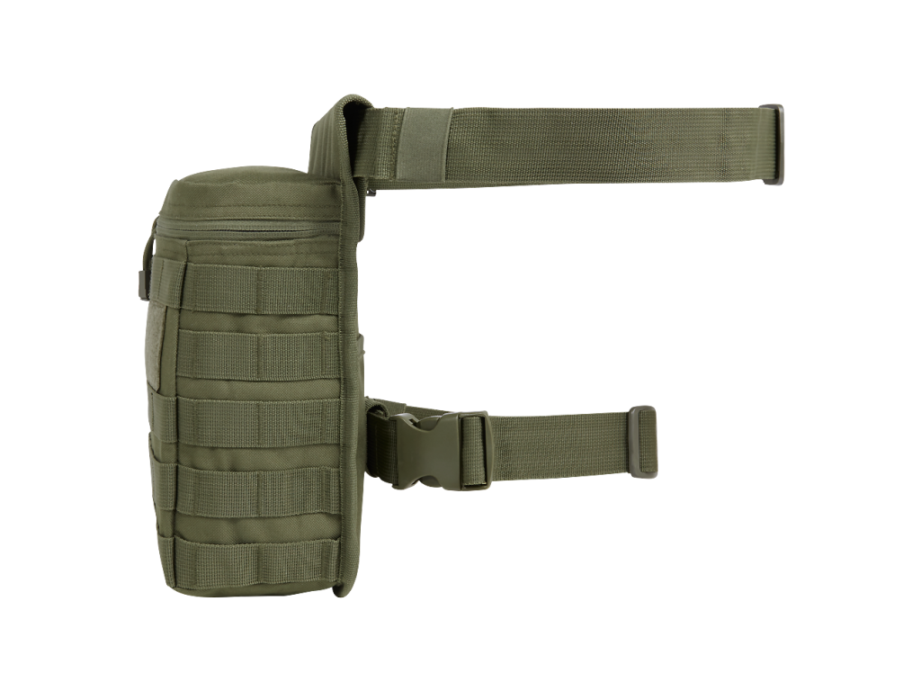 robust 600DEN polyester material / 1 large main compartment with zip and fixation strap (22 cm x 14 cm x 9 cm) / 1 side-pocket with zip / 1 hidden back pocket with hook and loop / Molle system loops / high-quality zippers with zip pullers / large hook and loop surface for patches / adjustable and detachable hip belt - max. 135 cm / adjustable and detachable thigh strap - max. 80 cm / ideal for work, spare time and sports
