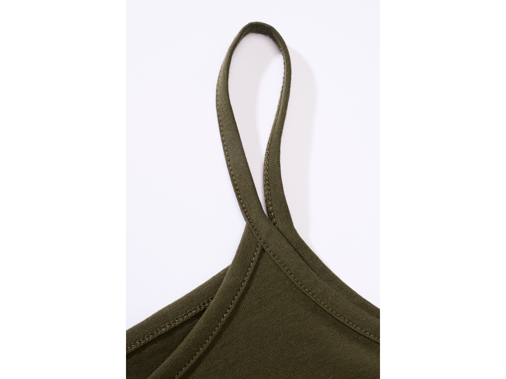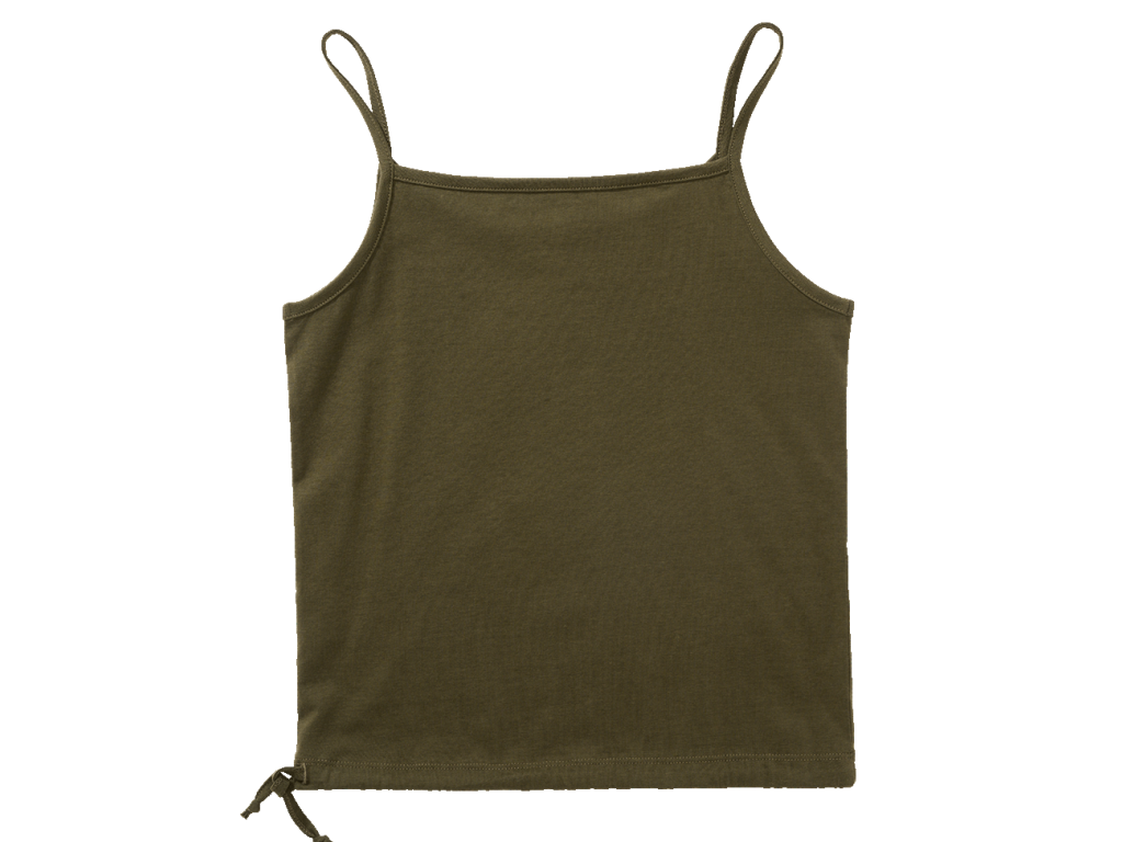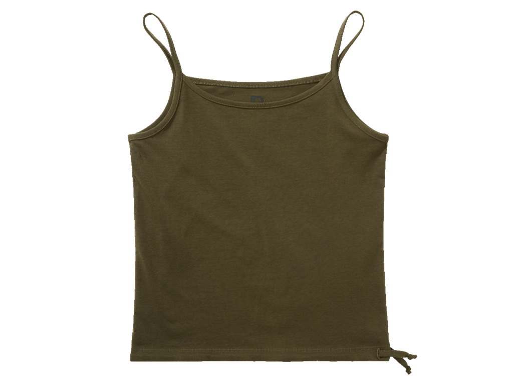 Dámsky spaghetti top s úzkym strihom, ktorý vyniká pohodlným materiálom a moderným detailom v podobe sťahovania v spodnej časti.