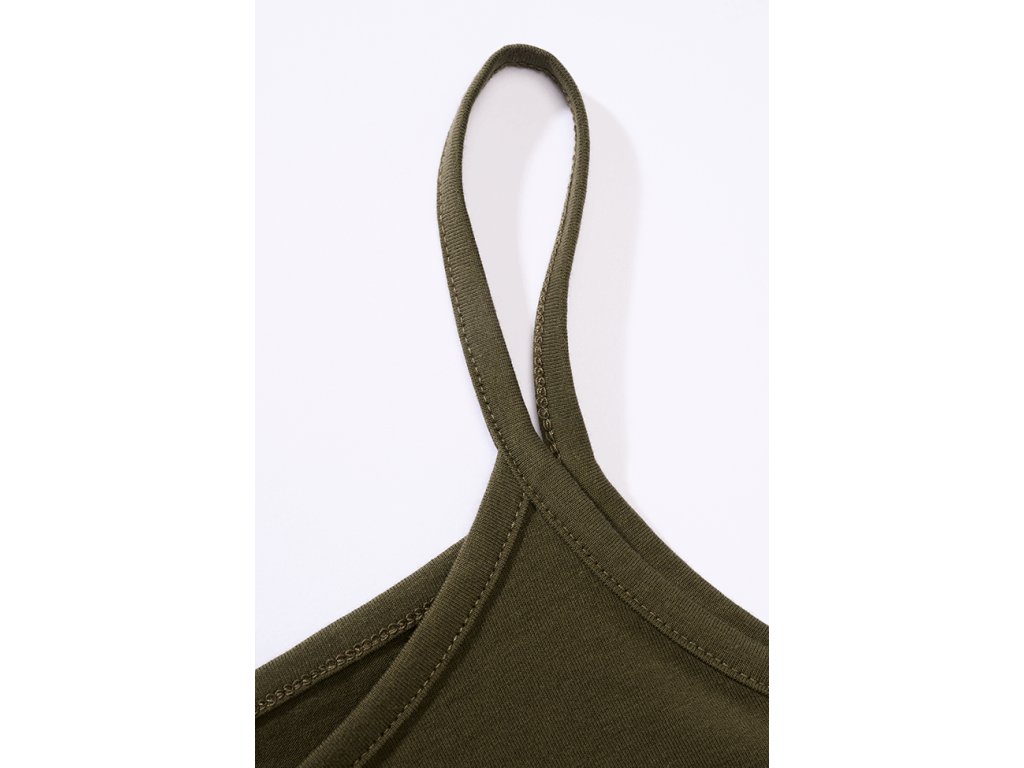 Dámsky spaghetti top s úzkym strihom, ktorý vyniká pohodlným materiálom a moderným detailom v podobe sťahovania v spodnej časti.