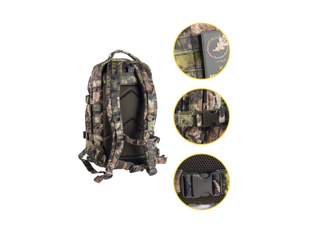 MIL-TEC US Assault Small 20 l je kompaktný taktický ruksak, ktorý zvládne každodenné nosenie aj výlety do terénu. Ponúka praktické členenie na výbavu, pohodlné nosenie a modulárne možnosti uchytenia doplnkov, vďaka čomu je vhodný na outdoor, turistiku, poľovníctvo aj strelnicu.