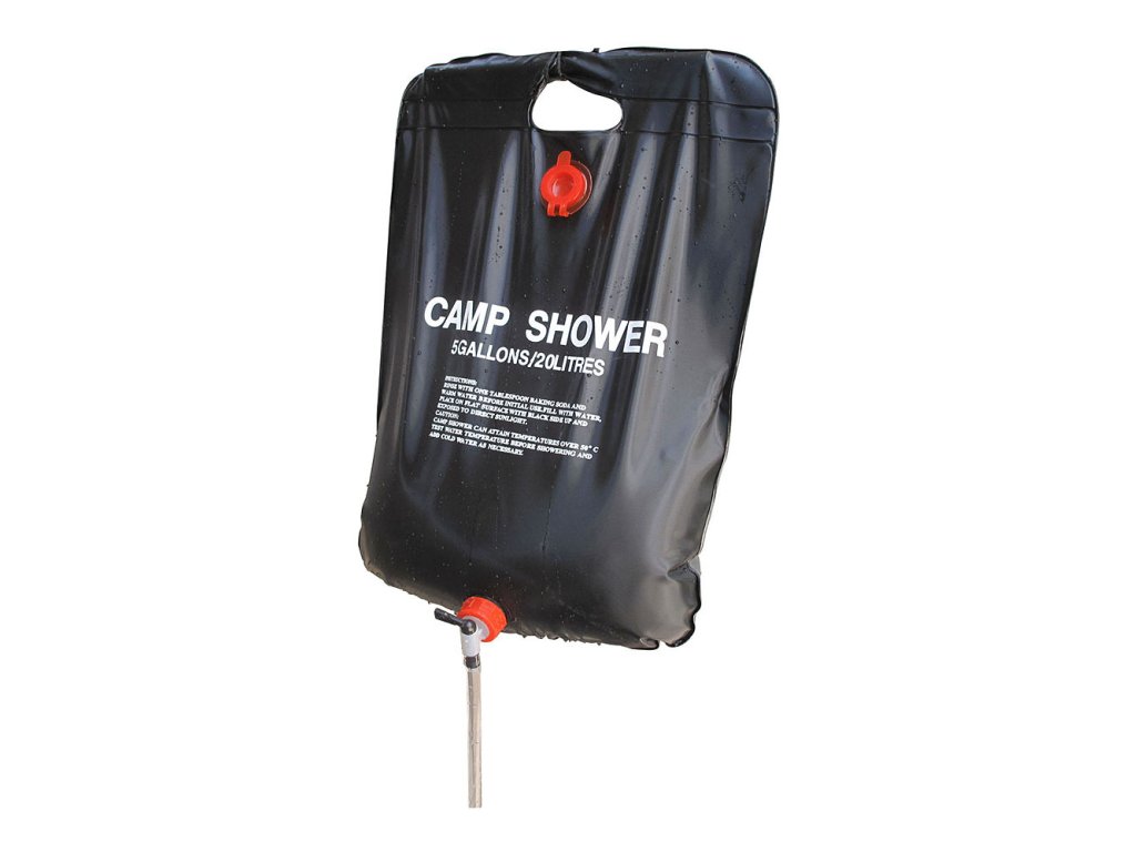 Zásobník na vodu – kempová sprcha je praktický vak s objemom 20 litrov, vhodný ako solárna sprcha pre kempovanie, turistiku a cestovanie. Umožňuje jednoduchý ohrev vody pomocou slnečného žiarenia a pohodlné osprchovanie v teréne.